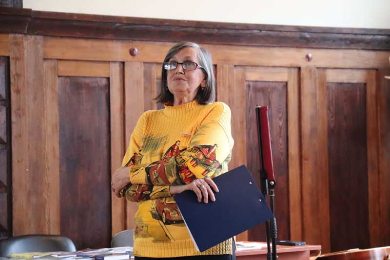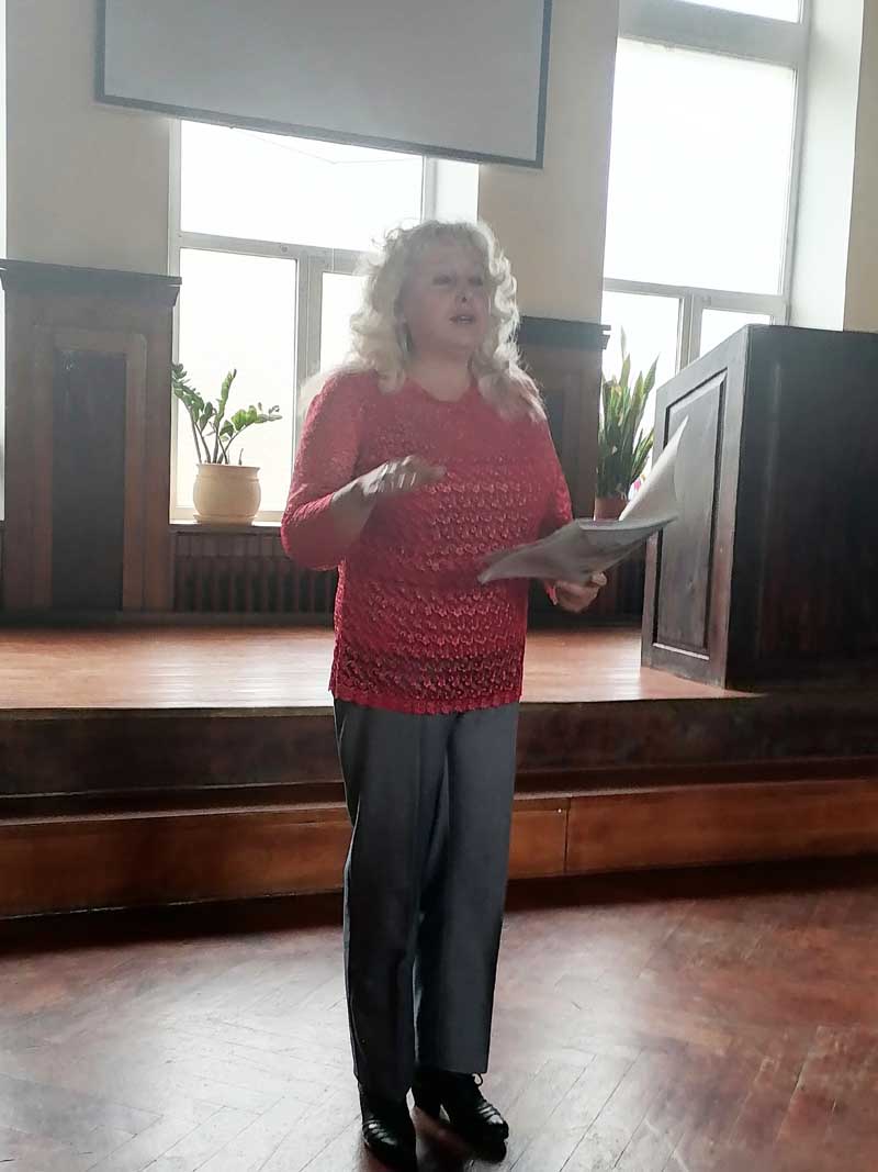 А один из почетных гостей, Председатель Совета депутатов Евгений Афанасьев, проникнувшись встречей с увлеченными общим делом людьми, заверил в своей посильной поддержке замечательный творческий коллектив округа. И какое же начало литературного мероприятия без добрых стихов. «Прощание с осенью», этим, по-осеннему грустным, наполненным светлой лирикой произведением открыла поэтическое выступление Таисия Богдан-Журихина. Откровением звучали со сцены зала стихи о нашем любимом городе, о богатой, многоцветной палитре красок, венчающих дни уходящей осени. Поэтесса, историк и краевед-любитель Карина Федосова провела исторический экскурс от улочек древнего Лабиау до нынешнего Полесска, включая все победы Русской армии на этой многое помнящей земле. «Вишенкой на торте» стало завораживающее стихотворение о древнем замке Лабиау. Детский писатель, поэтесса из Гурьевска Ирина Фридель поделилась своими забавными детскими «рифмовочками», но как же посерьезнели лица слушателей от проникновенного прочтения ею стихотворения о сыне, воине СВО.